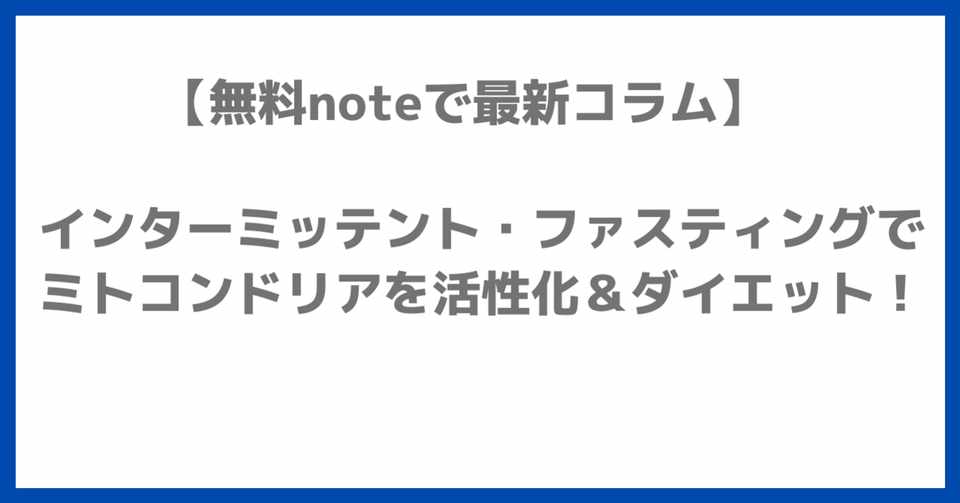 インターミッテント ファスティングでミトコンドリアを活性化 ダイエット しゅう オクゴエライター Note